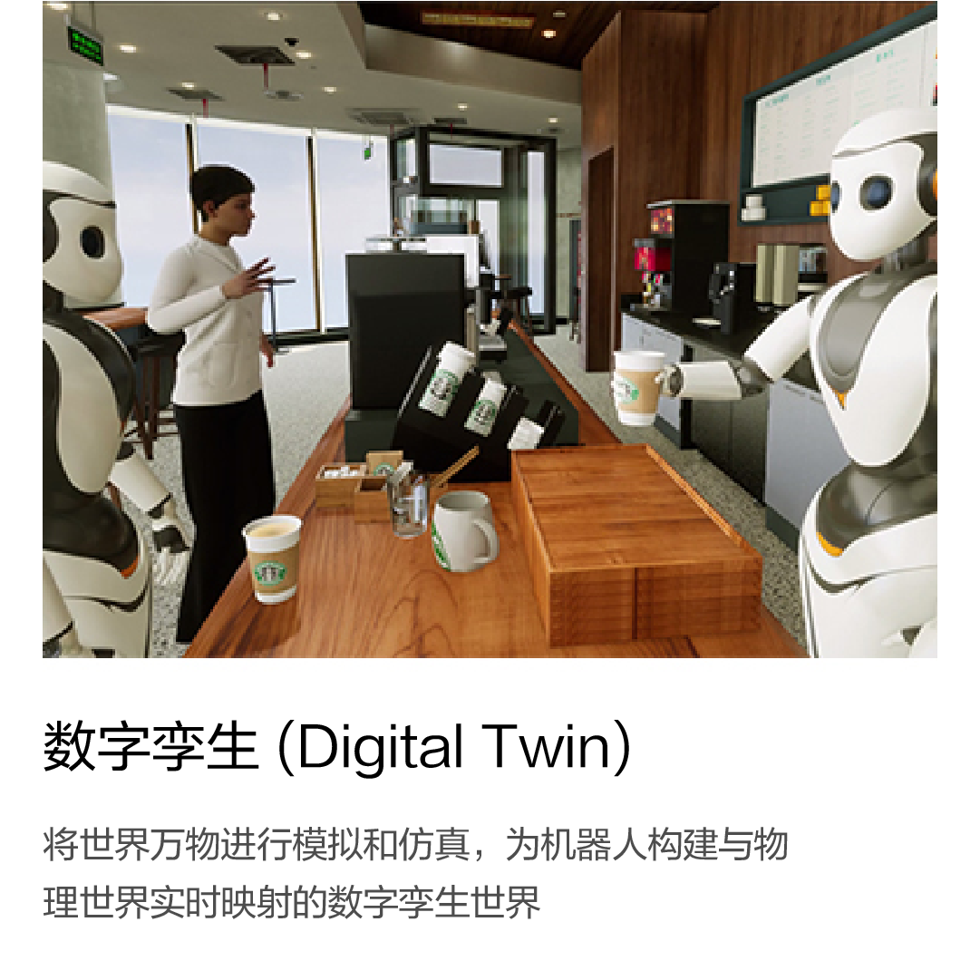 將世界萬物進(jìn)行模擬和仿真,為機(jī)器人構(gòu)建與物理世界實(shí)時(shí)映射的數(shù)字孿生世界
